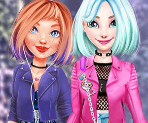 Elsa i Merida w Motocyklowych Kurtkach (BFFs Moto Jacket Trend) – Elsa i Merida zawsze trzymają rękę na pulsie mody. Żadna nowość i okazja do stworzenia nowej stylizacji nie umknie ich uwadze. Lubią zaskakiwać, wykorzystywać różne, pozornie nie pasujące elementy garderoby aby ich kreacje były wyjątkowe. Dziś wstały z energią i pomysłem na wykorzystanie ubrań motocyklowych. Będzie to mocny i rockowy look. Elsa i Merida będą więc wyglądały dziś zupełnie inaczej, niż pełniąc swoje role księżniczek. Ostre dziewczyny muszą mieć odpowiednie fryzury. Przyda im się pomoc w uzyskaniu odpowiedniego, wyrazistego stylu. Esencją kreacji są motocyklowe kurtki. Zobacz, jaki wybór mają nasze księżniczki i klikaj, aż dobierzesz tę właściwą. Następnie wybierz całą resztę elementów stroju. Połącz ją z podartymi dżinsami, aby uzyskać fajny wygląd. Akcesoria są kluczowe, więc wybierz zabawne i kolorowe, aby dopełnić wizerunek. Nie zapomnij wybrać muzykę do przygody rock’n roll.