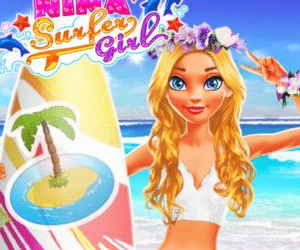 Nina Surfuje (Nina – Surfer Girl) – Nina trochę przybladła od ostatniego urlopu i czuje, jak dopada ją zmęczenie. Aby zaradzić obu problemom jednocześnie, można zrobić tylko jedno. Wziąć urlop i pojechać do jakiegoś uroczego, ciepłego i miłego miejsca. Słonce, plaża i relaks to jest sposób na Niny bolączki. Nina wie, ze wakacje są od tego, aby móc sobie pozwolić na różne przyjemności. Dlatego nie odmawia sobie pysznego jedzenia i chłodzących słodkich napojów. Po takim posiłku warto zadbać i o resztę ciała. Przygotuj skórę Niny na spotkanie ze słońcem i morzem. Nina ma plan popływać na desce. Trzeba więc zrobić kilka rzeczy. Przygotować i ozdobić deskę własnoręcznie, aby miała wyjątkowy charakter. Przeprowadzić zabiegi kosmetyczne, które przygotują Ninę na bezpieczne opalanie. A na koniec trzeba wybrać miejsce i porę dnia, o której Nina ze swoim chłopakiem będą szaleć na falach.